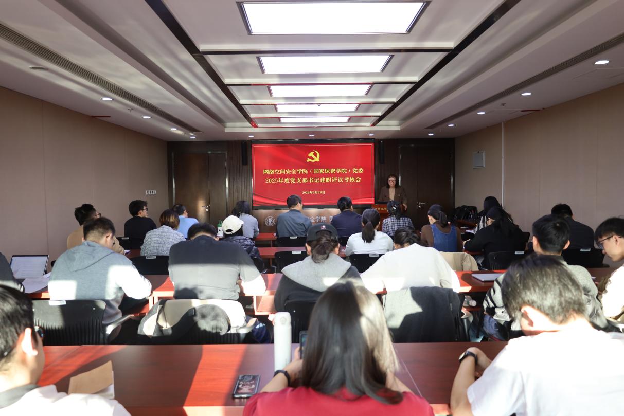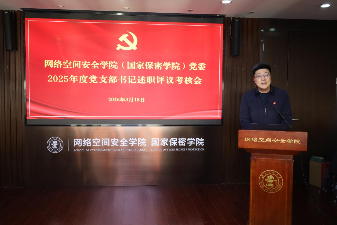 为贯彻落实学校党委关于基层党建工作部署要求和年度党建工作任务,全面压实党支部书记抓党建工作第一责任人职责,持续提升基层党组织政治功能和组织功能,3月18日下午,网络空间安全学院召开2025年度党支部书记抓基层党建工作述职评议考核会。学院党委书记杜晔、特邀党建组织员王雪庄、信息安全系主任黎琳、专职组织员、学生辅导员、党支部委员和师生党员代表等参会。会议由学院党委副书记、副院长安志强主持。